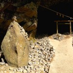 洞窟の中に、鳥居や社があり、不思議な光景です。