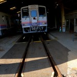 車庫内に着くと、廃線になるまで実際に使用されていた2両の列車がありました。